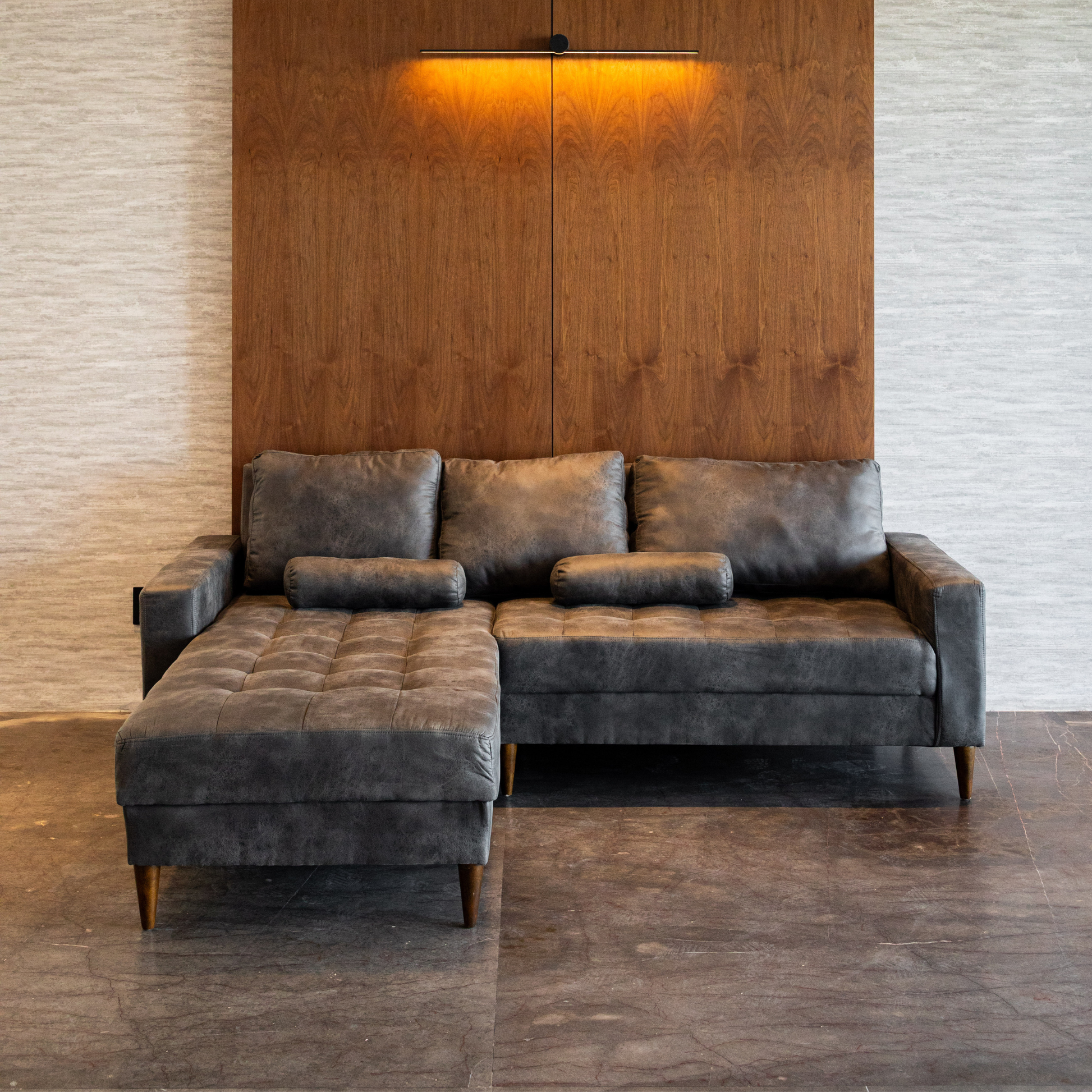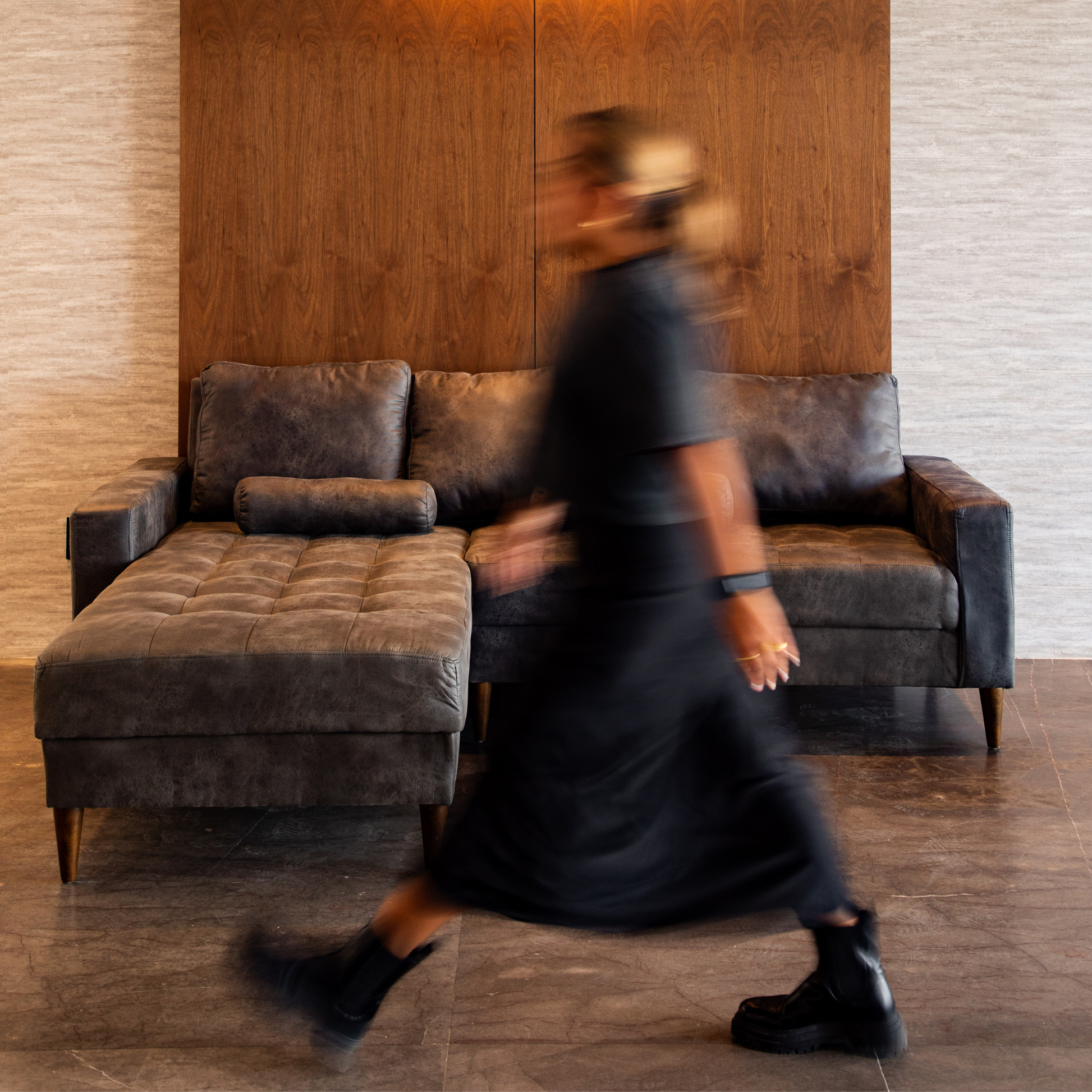 Acabado sobrio y contemporáneo que aporta elegancia sin perder calidez. Ideal para salas que buscan equilibrio entre diseño, confort y sofisticación.